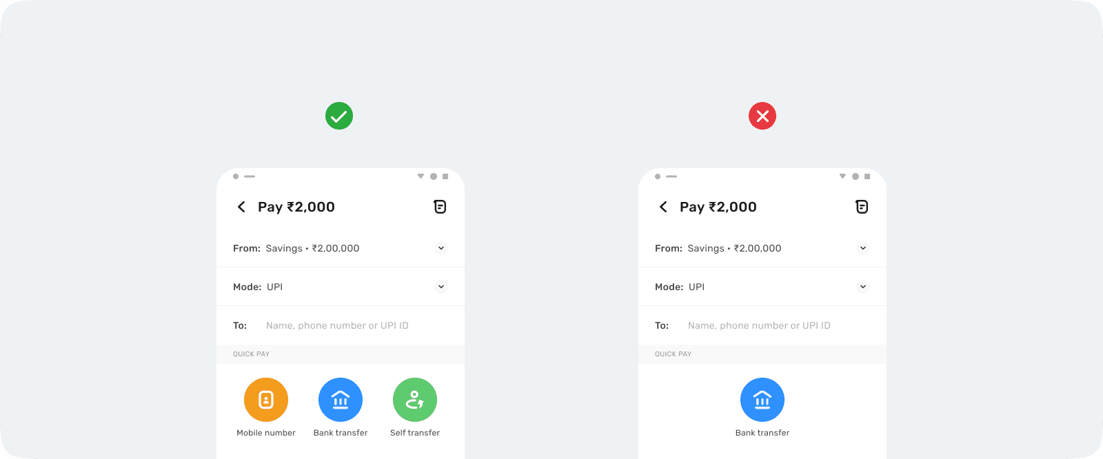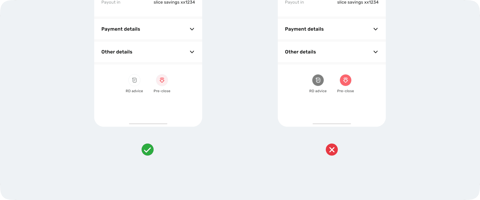 Avoid using a single circular button in isolation; group action with same hierarchy.