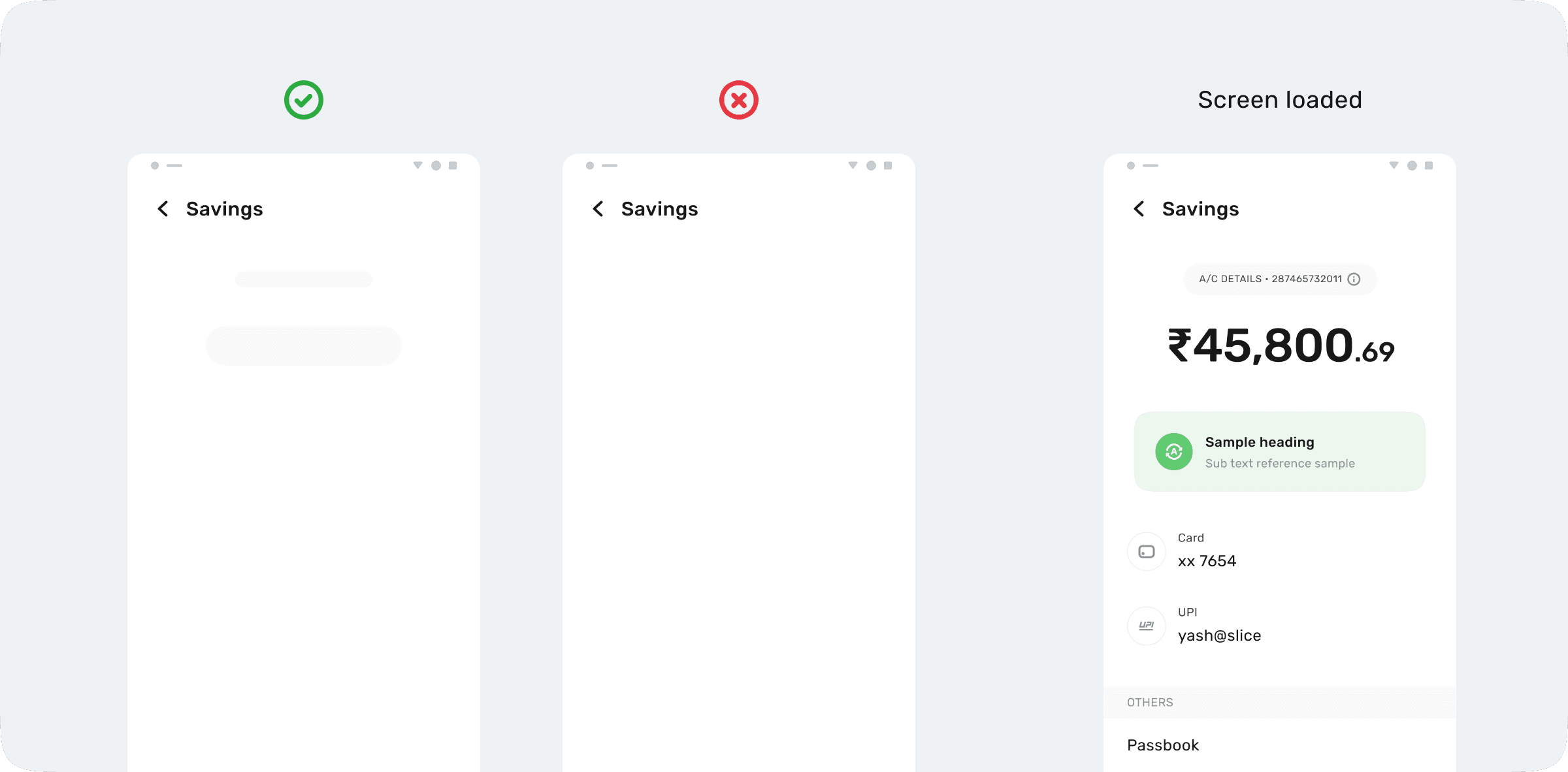 Use loaders or shimmers to indicate that content is being fetched or processed.