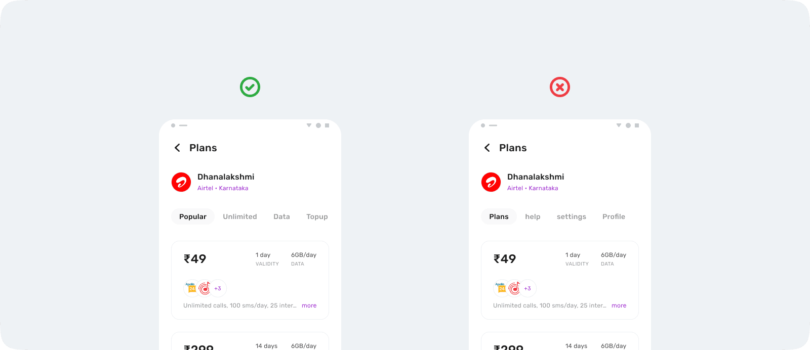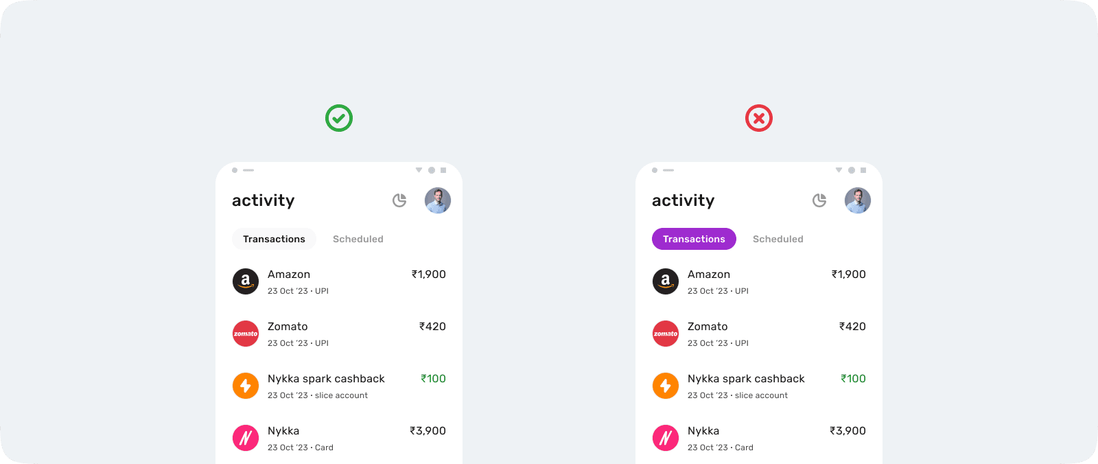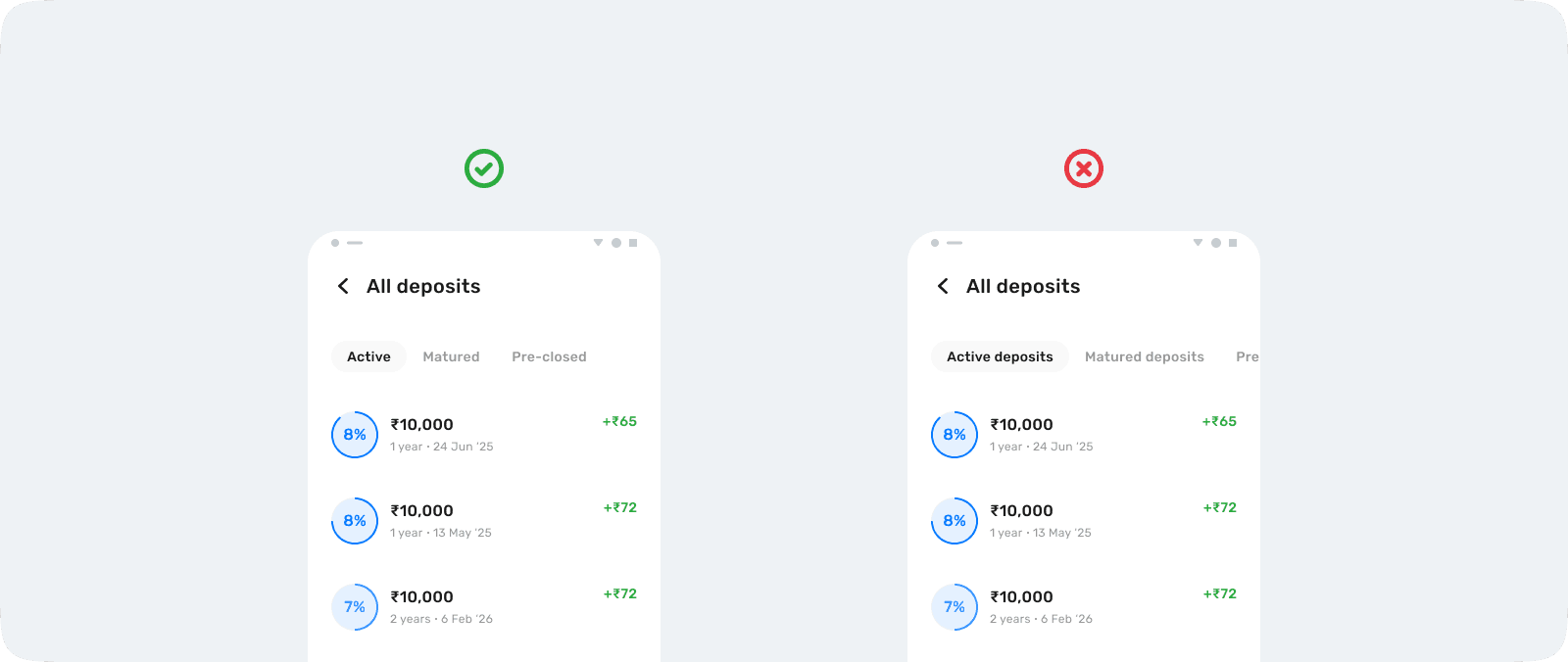 Use standard tabs for content-heavy sections and segmented tabs for short, action-driven filters or toggles.